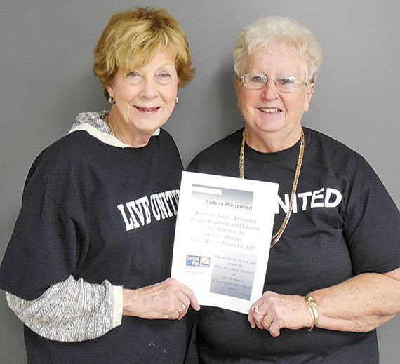 Recognition from UW United Way of Hardin County Board President Bonnie McBride (right) presents a certificate to Barb Winzenried for her years of service to the organization. Read More