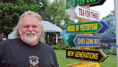 MV sign post Jeff Detwiler stands with the store directory sign post he made and installed at the corner of Taylor and Main streets in Mount Victory. Read More