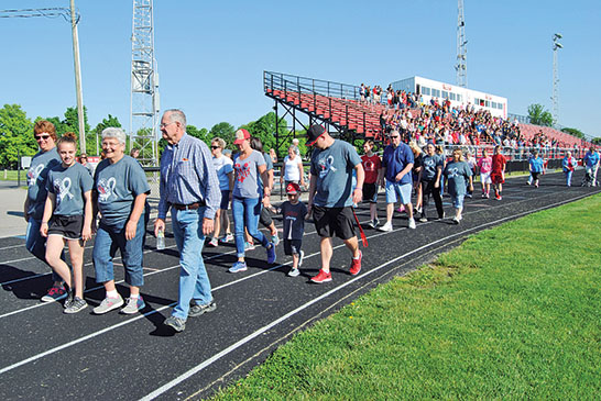 Choose Hope Cancer survivors begin the first lap around the track at Robinson Field in Kenton this morning as the Kenton Middle School students and staff gave them a standing ovation during Choose Hope. Read More