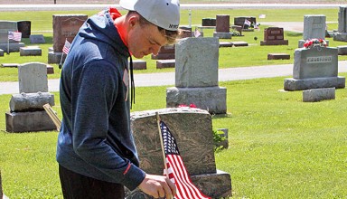 Memorial Day honor Daylin Pees, who will be a junior at Hardin Northern High School, places an American flag at a headstone in the Dunkirk Cemetery on Wednesday morning. Read More