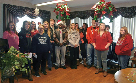 Singing to residents Members of the Kenton FFA stopped by at Hardin Hills Health and Rehabilitation Center to sing Christmas carols and pass out Christmas cards to residents. Submitted photo Read More