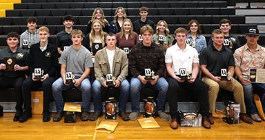 HN fall sports awards Hardin Northern held its fall sports awards ceremony Tuesday night. Pictured are (from left, front) Justin Thiel, Most Valuable Golfer; Andrew Sutton, Polar Bear Cross Country; Xander Wilson, Defensive Back of the Year; Nolan Hopson, Polar Bear of the Year Football; Bodi Hipsher, Offensive Lineman of the Year; Caleb Emerine, Defensive Lineman of the Year; Kaden Guinn, Senior Class Leadership … Read More