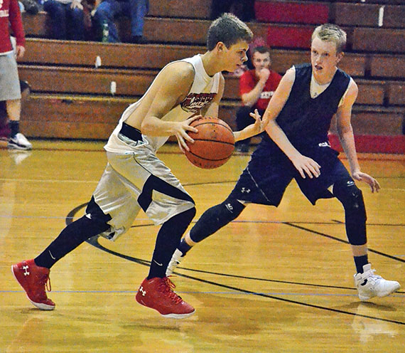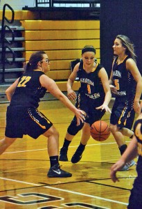 Preparing for the season Hardin Northern freshman Ashton Dye tries to slide between a pair of defenders, Mikalea Ayres (left) and Alanna Roth, during a five-on-five half court drill at the Polar Bears’ girls basketball practice Monday. Read More