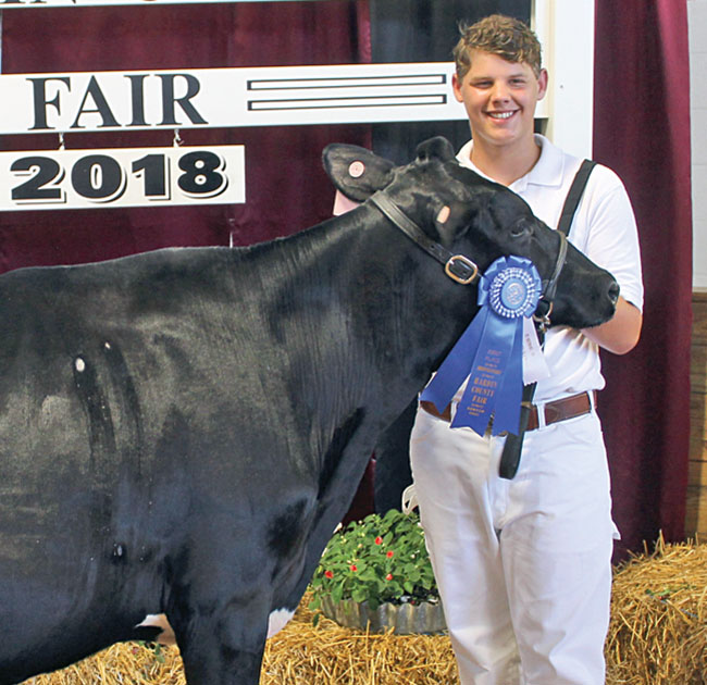 Big awards presented for big animals at fair Posted on September 11, 2018 0 Placing first in the beef showmanship classes on Wednesday were (from left) Mekenzie Jolliff (senior), daughter of Stephanie and Tom Jolliff; Lane Underwood (intermediate), son of Luke and Holli Underwood; and Masen Jolliff (junior), son of Stephanie and Tom Jolliff. All attend Ridgemont School. Mekenzie is a member of the Ridgemont FFA, Lane is a member of the Boots and Buckles 4-H club and Masen is a member of the Ridgeway Junior Boosters. Callie Cromer, daughter of Amanda and Nathan Cromer, earned senior grand champion Holstein honors during Wednesday’s dairy show. She attends Ridgemont School and is a member of the Hardin County Dairy Club. Gabrielle Weaver, daughter of DeWayne and Melissa Weaver, earned first place in senior dairy showmanship during Wednesday’s dairy show. Gabrielle, who is home schooled, is a member of the Goshen Youth 4-H club. Grace Lawrence, daughter of Don and Beth Lawrence, won junior champion Milking Shorthorn during Wednesday’s dairy show. Grace is home schooled and is a member of the Liberty Belles and Boys 4-H club. Ethan Lawrence, son of Don and Beth Lawrence, placed first in junior dairy showmanship during Wednesday’s dairy show. Ethan is home schooled and is a member of the Liberty Belles and Boys 4-H club. Junior champion Jersey honors went to Zachary Wedertz, son of Chris and Heather Wedertz, during Wednesday’s dairy show. Zachary attends Kenton High School and is a member of the Hardin County Dairy Club. Zachary Wedertz, son of Chris and Heather Wedertz, earned grand champion Jersey honors during Wednesday’s dairy show. He attends Kenton High School and is a member of the Hardin County Dairy Club. Earning first place in the intermediate class of dairy showmanship on Wednesday was Alex Weaver, son of DeWayne and Melissa Weaver. He is home schooled and a member of the Goshen Youth 4-H club. Taking the award for reserve champion market beef born and raised in Hardin County on Wednesday was Garrett Royer, son of Brenda and Rick Royer. Garrett attends Upper Scioto Valley High School where he is a member of the FFA. Brian Searson, son of Fred and Heather Searson, took home the award for grand champion market beef born and raised in Hardin County during Wednesday’s show. Brian attends Kenton High School and is a member of the Lynn Valley Farmers. The breeder for the prize-winning animal was Dunson Farms. Winning junior champion and senior reserve champion Holstein honors at Wednesday’s dairy show was Nathan Mattson, son of Sue and Paul Mattson. Nathan attends Ada High School where he is a member of the FFA. Ethan Lawrence, son of Don and Beth Lawrence, earned junior champion Guernsey honors during Wednesday’s dairy show. He is home schooled and is a member of the Liberty Belles and Boys 4-H club. Earning junior champion Ayrshire honors at Wednesday’s dairy show was Callie Cromer, daughter of Amanda and Nathan Cromer. She attends Ridgemont School and is a member of the Hardin County Dairy Club. Dylan Thompson of Upper Scioto Valley FFA showed the grand champion beef feeder during the junior fair show on Thursday. Dylan is the son of Jeff and Felicia Thompson of Alger. Sammie Unger of Kenton FFA exhibited the reserve champion beef feeder during the junior fair show on Thursday. Sammie is the daughter of Kevin and Marcia Unger of Kenton. Mekenzie Jolliff of Ridgemont FFA showed the reserve champion supreme heifer during the junior fair beef breed show on Thursday. Mekenzie is the daughter of Tom and Stephanie Jolliff.