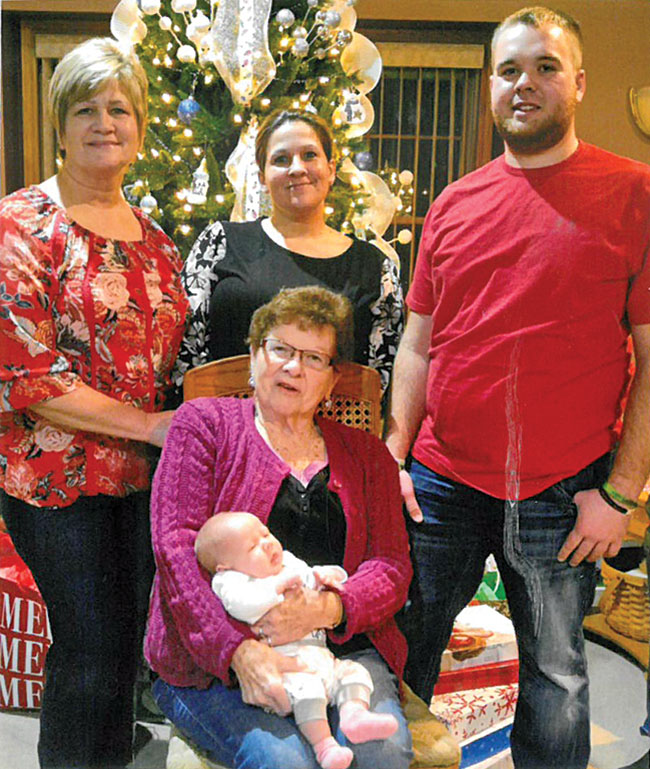 Five generations Posted on January 19, 2019 0 Seven-week-old Braylynn Joyce Thompson, held by great-great-grandmother Phyllis (Guthrie) Sanders of Alger, completes five generations in her family. Joining them are (from left) great-grandmother Gina Plaugher of Lima, grandmother Felicia Thompson and father Ross Thompson of Alger. Submitted photo