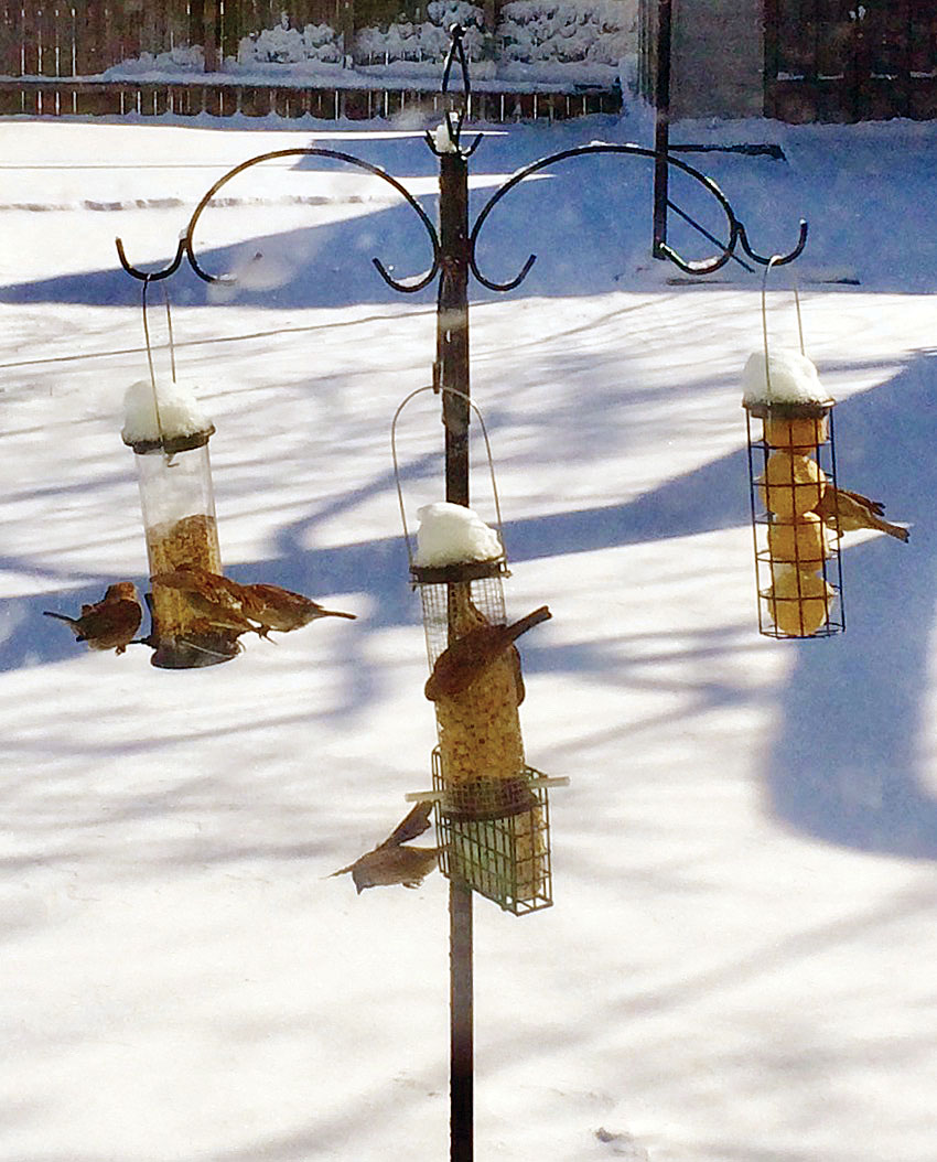 Frozen food Posted on February 11, 2017 0 Times photo/Ty Thaxton A flock of wrens gather around snow-topped feeders to grab a morning snack, braving the wind, snow and freezing temperatures this week in Kenton.