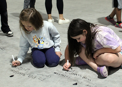 Adding their names Posted on May 6, 2025 0 Kenton Elementary School first graders Ezra Petty (left) and Zoey Coleman take pride in signing their names to the gym floor at the new Kenton Middle School/High School on Monday morning. Both are students in Ms Snider’s class. High school and middle school students signed the concrete on Friday, followed by the KES students Monday, before it is covered with flooring. It continues a tradition at Kenton, as students signed the gym floor when KES was under construction. Superintendent Chad Thrush said it helps to give students a connection to and ownership of the new school. Completion of the school is anticipated in November. Times photo/Tim Thomas