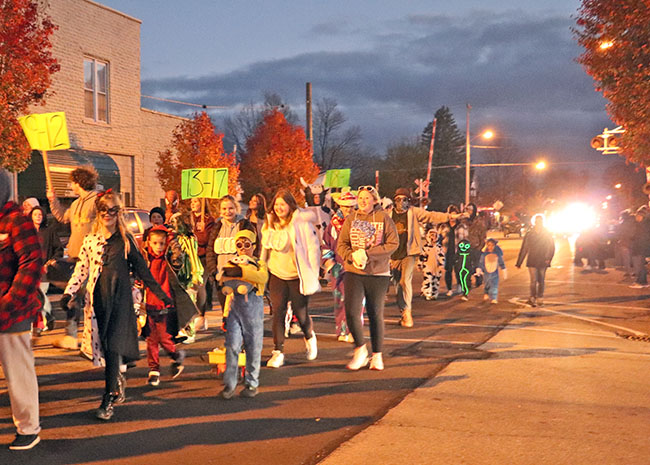 Best float Posted on October 27, 2022 0 An interpretation of Alice in Wonderland was judged the best float in the Dunkirk Halloween Parade on Wednesday night. Featured are Kris and Duane Hastings, Bret Hastings, and Eric and Stephanie Trachsel plus family. There was a large crowd for the annual parade, conducted by the Northern Hardin County Fire District. Times photo/Richard Katterjohn
