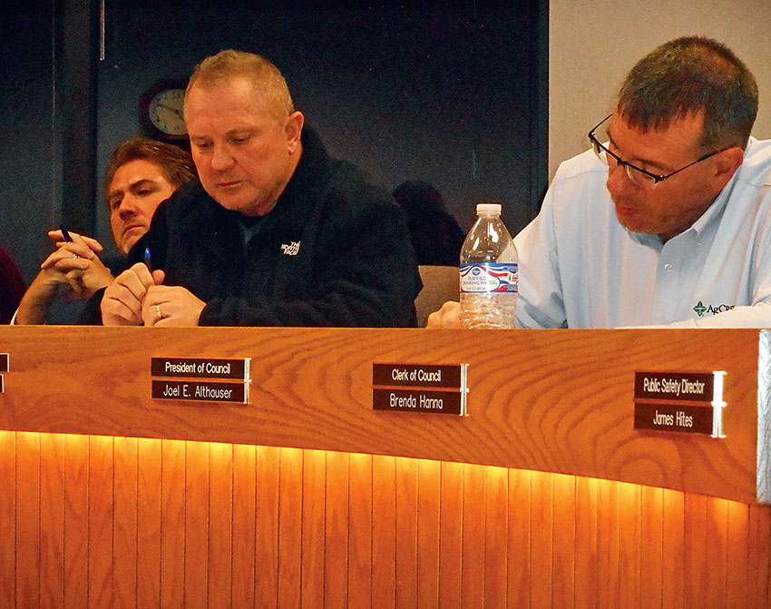 Budget concerns Posted on December 28, 2018 0 Times photo/Tim Thomas Kenton Mayor Randy Manns (front, left) and City Council President Joel Althauser discuss the 2019 city budget at Thursday night’s council meeting. At rear is Jason Miller, city prosecutor.