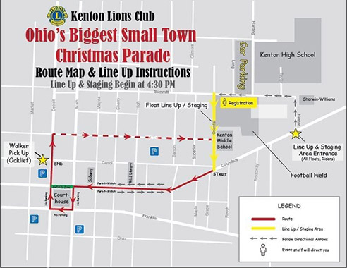 Christmas kickoff tonight with annual parade Posted on November 26, 2024 0 Main Street reopening, courthouse lighting and Window Wonderland reveal part of tonight’s festivities The Kenton Lions Club: Ohio’s Biggest Small Town Christmas Parade will begin at 6:30 p.m. on Tuesday, Nov. 26. Prior to the parade, there will be a ribbon-cutting ceremony and grand reopening of Kenton’s Main Street. A three-block section had been closed to improve the city’s infrastructure and streetscape. In addition, there will be the unveiling of the Window Wonderland and lighting of the Hardin County Courthouse. In preparation for the parade, there will be no parking permitted around the square after 3 p.m. on Tuesday. Park and watch viewing options will be available on a first come, first served basis on East Columbus Street between the Mary Lou Johnson Hardin County District Library and Subway. The parade lineup and staging area is on Hester Street, and floats and vehicles will be directed to the Kenton Middle School to start the parade. It will travel on East Columbus Street to Main Street, south on Main to Franklin, east on Franklin to Detroit, and going one block north to end at Columbus where after-parade activities will take place. High school bands from Kenton, Hardin Northern, Ridgemont and Upper Scioto Valley are expected to participate in the parade. Parade entries and the theme of their float (if provided) are as follows: The Hardin County Republican Party – 12 Days of Christmas, Zenobia Shrine Clowns – Clowns. Lake of Lights, Minich Truck Repair – Towing Of the Lights, Heartbeat of Hardin County – The Best Gift is a Child, Merry On Cherry Draper Family Light Show – Colorful Christmas; Panther Creek Solar – Santa’s Solar Landing In Whoville, New Leaf Lawn and Garden Center – A Family Christmas, Walmart 5355, Central Church of Christ Kenton – Unwrap the joy of CHRISTmas, Hardin County Shriners, Schindewolf-Stout-Crates Funeral Home – Christmas in Style; Honestly Clean LLC – Elves on a Shelf, SV&E Refuse Service        – Christmas themed, Warrior for Dogs – Grinch and Max, Hardin County Special Olympics – Christmas/Sports, Quest Federal Credit Union – The Quest Express, No Limits Hair and Tannery – White winter wonderland; Herzog Car Wash – White Christmas, Mary Rutan Health – Mary Rutan Health Team, Blanchard Place Christmas Crew, Rise FM – Ohio Christmas, Hillcrest Lanes and Hardin County Bowling Association – Bowling Christmas, Kenton Eagles 2163 – Shrek; HSLC – HSLC’s Jolly Red Christmas Ornament, The Jennings’ Family Christmas, Kenton Amateur Radio Club – We are here to celebrate xmas, Lean Value Sires – Merry Pigmas!, OhioHealth – Christmas at the Cabana, The HomeBound Company – Candle, John Rembis – 1971 Brush Fire Truck; Hensel Ready Mix – The Ohio State Buckeyes, Kenton New Hope Church – Winter wonderland, Coulson Farm Equipment Repair – Coulson Farm Clydesdales, Lewis Family McDonalds, Scooter’s Coffee – Candy Land, Lighthouse Behavioral Health Solutions – Santa’s Little Helpers; Hardin County Engineers Department, HHWP-CAC Head Start Kenton – Ice Castle, LifeWise Academy – Clifford’s Christmas, 3rd anunal Santa Shop held on Dec 14 from 12-5 – Santa’s elf’s workshop; Ridgeway Church of Christ Youth Group – The First Nativity. Mid-Ohio Energy Cooperative – Merry and Bright, Lighting up the holidays, and Hardin County VIPS. Live reindeer from Pine Acres Reindeer Farm will be featured in the parade, sponsored by Stillwater Metal The Amazing Giants and Romick Railway will be featured in the parade. Meet-and-greet with Santa at the caboose after the parade. Santa’s Horse and Carriage sponsored by Twirl, The LW and Hensel Ready Mix, Inc. Amazing Giants Meet-N-Greets on Columbus Street after the parade sponsored by Invenergy and Hardin Solar Energy Center Romick Railway Train Rides (free) on Columbus Street after the parade, sponsored by Kenton Moose Family Center 428 There also will be food vendors available to purchase meals and treats. – Fork in the Road Food Truck, Circle U Waffle Co. and Buerger’s Fries and More.