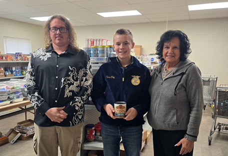 Forest pantry gift Posted on December 16, 2025 0 Riverdale Community Lions Club member Joan Moening (right) presented $500 of canned chicken and fruit for the Forest Food Pantry from Riverdale FFA member Tyler Clay (center). At left is Forest Pastor Chris Thacker. Submitted photo