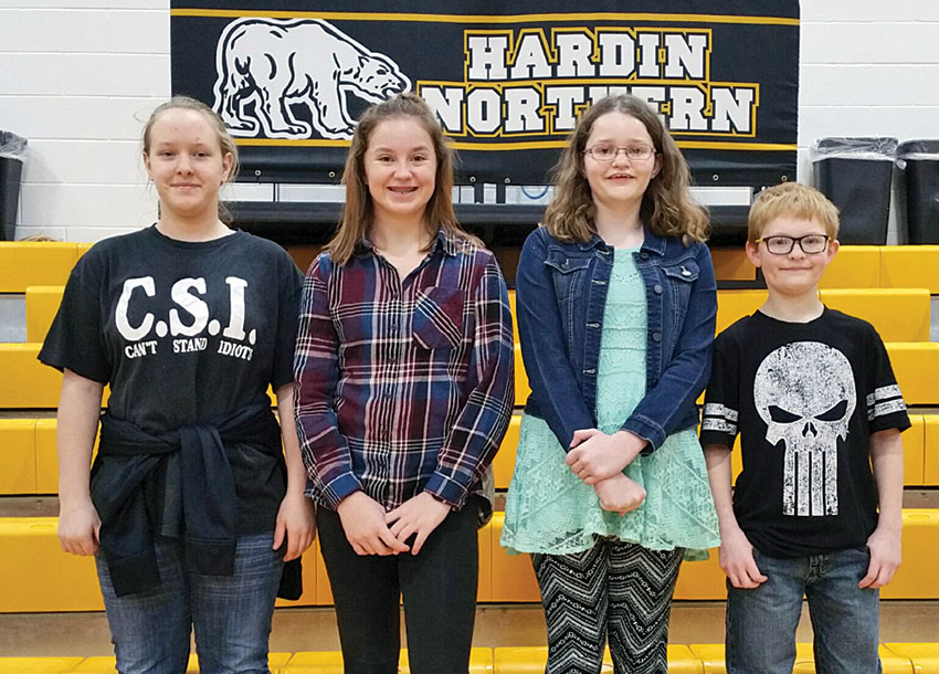 HN top spellers Posted on February 3, 2017 0 Hardin Northern students in grades 2-8 participated in the school’s spelling bee on Wednesday. The winners were (from left) junior high alternate Jadi Herrod-Gonzalez and champion Haylie Spearman, and at the elementary level, champion Kiree Carey and alternate Darrin Wilson. Haylie and Kiree will represent Hardin Northern at the regional spelling bee on March 11 at the Knights of Columbus in Lima. Submitted photo