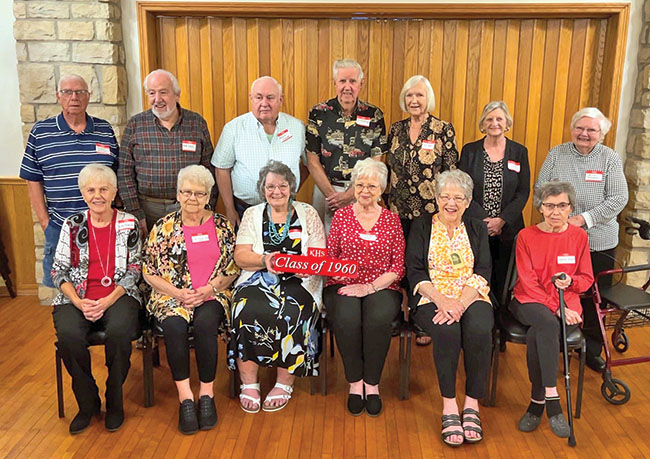 Kenton High School Class of ‘60 reunites Posted on September 25, 2023 0 Attending 63rd reunionGathering for the 63rd reunion of the Kenton High School Class of 1960 were (from left, front row) Lou Ann Anderson, Judy Hommel Lieberick, Carolyn Temple, Sondra Rhoades, Jeanne Hayes Reese, Evelyn Jones Osborn; (back) Clayton Downey, Robert Case, Morris Johnson, Jim Long, Susie Mullins, Rose Valerio Harshfield, and Billie Thompson. Kenton High School Class of 1960 met for reunion of classmates at the Elks Lodge on Saturday, Sept. 16, 2023. Festivities opened by a greeting song of “Hi, neighbor” by Sondra Rhoades. Committee chairwoman Kay Flowers shared some fun facts and readings. Jon Wheeler , 1937 alumni, was recognized for his accomplishments of his 103 years, and the class sign he made was used in the class photos. Twenty-seven class members and 13 guests enjoyed a luncheon and then class photos were taken. The number of deceased members remained at 51. The information for the next reunion of Sept. 24, 2024, was made available for everyone to take home. KHS Class of ‘60 reunitesAttending the 63rd reunion of the Kenton High School Class of 1960 were (from left, front row) Beatrice Scott Thompson, Carole Kinnear Guider, Delores Sullivan Mason, Velma Rapp Hendrix, Kay Smalley Flowers, Sandy Gardner Parker, Barbara Hatch Hanna; (second row) Ron Reese, Greg Hites, LeRoy Osborn, George Guider, Ken Lucas, Charles Dick and Dan Sharp.