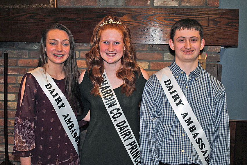 New titles Posted on February 25, 2019 0 Times photo/Dan Robinson Laney Harpel (center), the 2018 Hardin County Dairy Princess, congratulates Callie Cromer and Zach Wedertz for being named the Hardin County Dairy Service Unit’s ambassadors for 2019. The organization held its annual banquet Saturday at the Plaza Inn Restaurant and announced it will no longer crown a princess, but will encourage more participation of youth by naming ambassadors for the year.