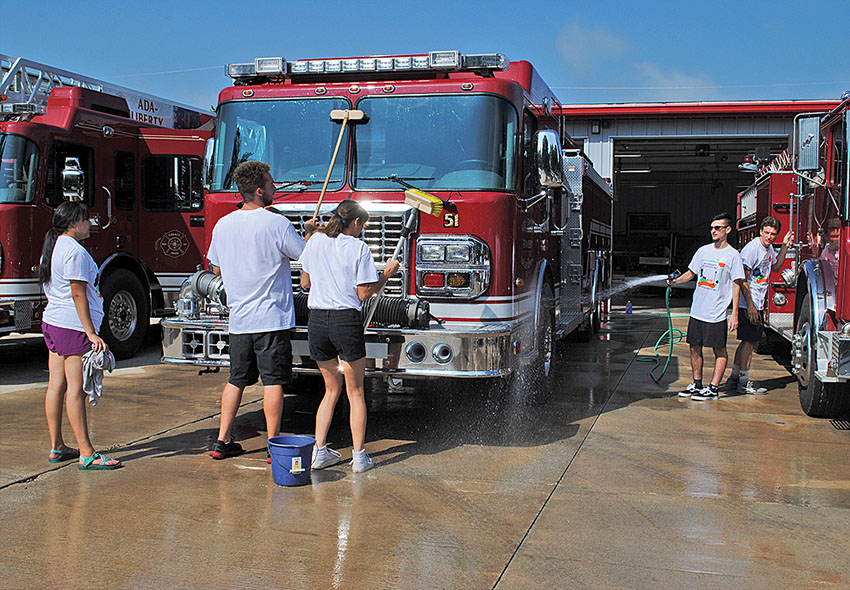 ONU ACEs Posted on August 20, 2018 0 Times photo/Dan Robinson Incoming Ohio Northern University students were given an opportunity to get to know their new community better and contribute to it at the same time. The annual Ada Community Engagement (ACE) event sent Polar Bear freshmen to work washing the Ada-Liberty fire trucks, weeding gardens, painting buildings, assisting residents at Vancrest and performing a variety of other community service deeds.