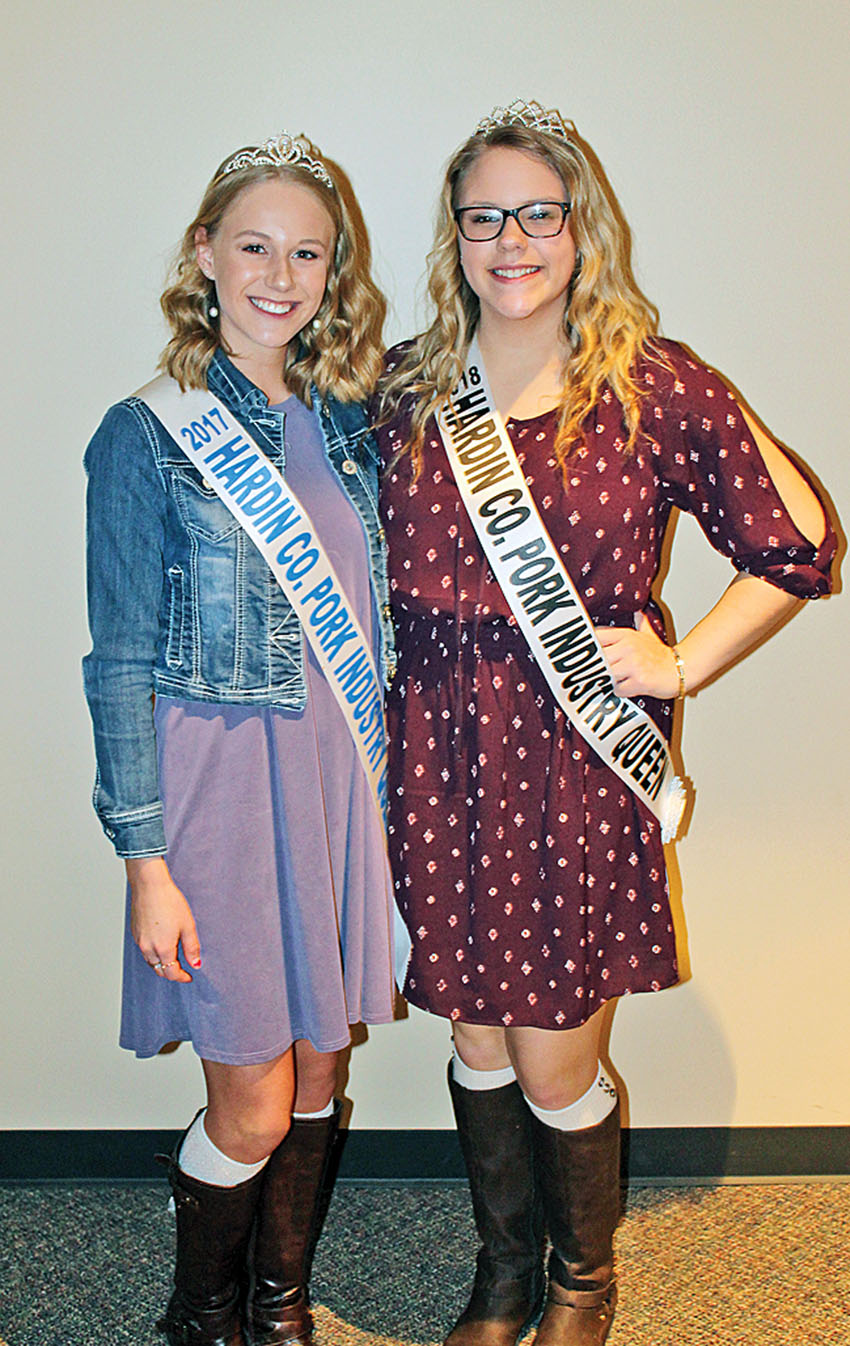 Pork royalty Posted on March 19, 2018 0 Times photo/Ty Thaxton Alexa Lowry (right) was crowned as the 2018 Hardin County Pork Industry Queen at Saturday night’s pork banquet at St. John’s Evangelical Church in Kenton. With Lowry is 2017 Queen Erica Jacobs.