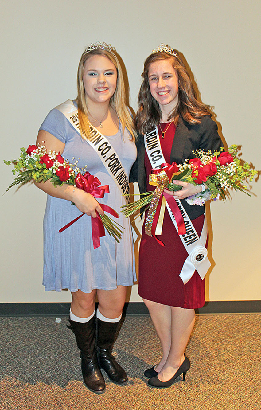 Pork royalty Posted on March 11, 2019 0 Times photo/Ty Thaxton Mekenzie Jolliff (right) was crowned the 2019 Hardin County Pork Industry Queen during Saturday’s Pork Producers banquet at St. John’s Evangelical Church in Kenton. Joining her is the 2018 queen, Alexa Lowry.