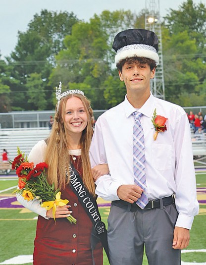 Ada High School students Kaitlyn Bowden was crowned homecoming queen and Carter Conley was named king on Friday evening prior to the Bulldogs’ football game against Delphos Jefferson. They will reign over the school’s homecoming dance tonight in the Ada gym.