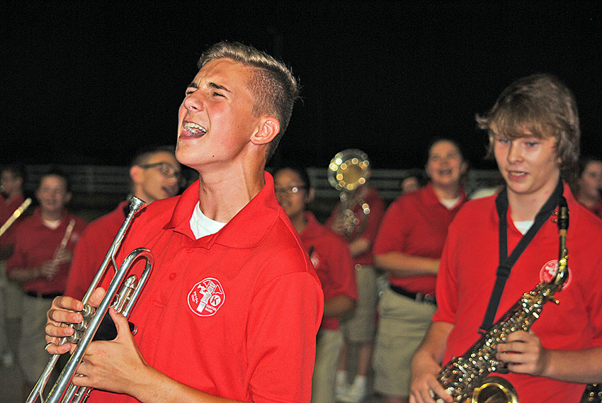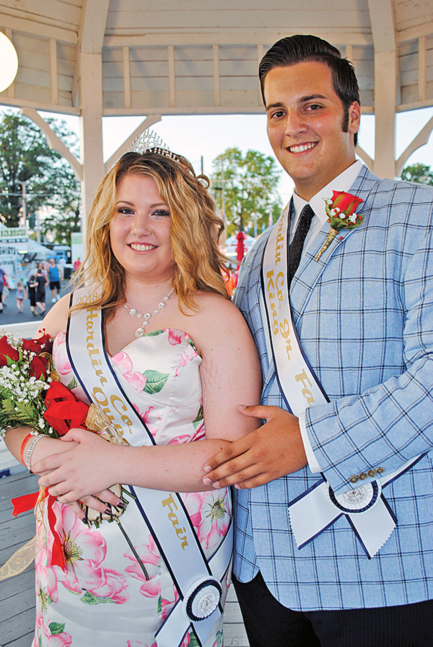 Royalty selection and band show open the fair Posted on September 5, 2018 0 Times photo/Dan Robinson At left, Mara France of Ridgemont and Chase Fleece of Kenton were crowned the 2018 Hardin County Fair queen and king Tuesday evening in front of a large crowd at the grandstand. France’s parents are Brandon and Mandy France of Ridgeway. Fleece is the son of Craig and Jennifer Fleece of Kenton. The runners-up in the contest were the non-traditional entries of home schooled student Ruth Ann Osborne and Ben Logan student Mason Manns. Times photo/Dan Robinson At right, Noah Ketcham (left) and the Kenton Wildcat Marching Band belt out the words to the song “Mickey” which was one of the one-hit wonders in their part of Tuesday night’s band show. Bands from Ada, Hardin Northern, Ridgemont, Riverdale and Upper Scioto Valley also presented their productions.