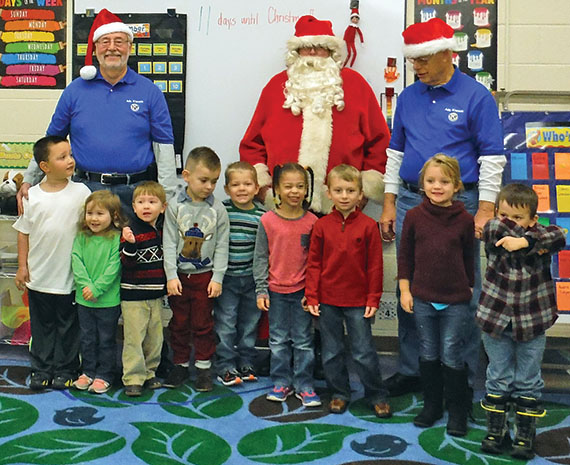 Santa visit Posted on December 22, 2016 0 Ada Kiwanis Club members Joe Ferguson (left) and John Berg accompany Santa Claus to the classrooms of the Ada kindergarten classes. The club members brought Santa to the school to help the morning and afternoon students get into the Christmas spirit. Ada Kiwanis visit Kindergarten Submitted photos