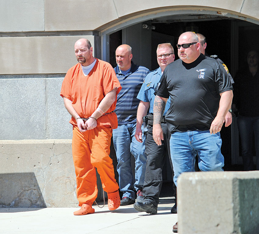 Sheldon gets 20 years in prison in attempted murder case Posted on May 1, 2018 0 Gerrick Sheldon is led away from the Hardin County Courthouse by authorities after his conviction Tuesday afternoon. A Hardin County man found guilty of attempting to have his son kill his step-mother and step-brother has been sent to prison for 20 years. Judge Scott Barrett called the crimes of Gerrick Anthony “Tony” Sheldon “heinous” as he handed down his decision on the case Tuesday afternoon. A jury found Sheldon guilty on April 3 of two counts of complicity to attempt aggravated murder; a total of four counts of complicity to attempt aggravated arson, complicity to unlawfully possess a dangerous ordnance, complicity to possess criminal tools, violation a civil protection order and endangering children. Three of the arson charges were blended into the two complicity to attempt aggravated murder charges. Also blended were the criminal tool and unlawful ordnance counts. When given a chance to speak to the court prior to sentencing, Sheldon simply said as he choked back emotions, “Just tell her I love her and miss her every day. She’ll figure out what happened that night.” The two complicity to commit aggravated murder charges (one with his estranged wife Danielle Sheldon as the victim and the other her minor son) carried a sentence of seven years each with $1,000 fine per count. Sheldon will serve 36 months in prison on the complicity to commit aggravated arson, another year for the unlawful possession of a dangerous ordnance and two years for violating a protection order. He is being given 262 days for time served. A full story will be published in Wednesday’s Kenton Times. By DAN ROBINSON Times staff writer