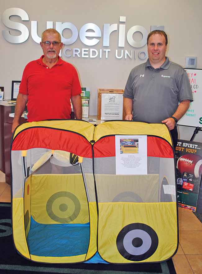 Stuffing the bus Posted on July 25, 2018 0 Ron Wages (left), of Helping Hands Outreach, and Matt Manns, branch manager of Superior Credit Union in Kenton and a United Way of Hardin County board member, stand with a school supplies collection bus at the credit union. Residents are asked to fill the buses, located throughout the county, with school supplies which will be distributed to students at the beginning of the school year. The supplies can be for students in grades 1-12 and parents can sign up for the assistance through Aug. 2 at Helping Hands. More information is available at 419-673-8650. Times photo/Dan Robinson