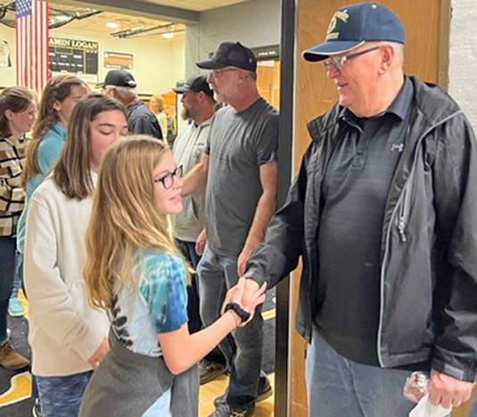 Thanking a veteran Posted on November 11, 2022 0 Lauren Snyder, a sixth grader at Benjamin Logan, thanks an area veteran for his service to the country following the school’s annual Veterans Day ceremony Friday morning.