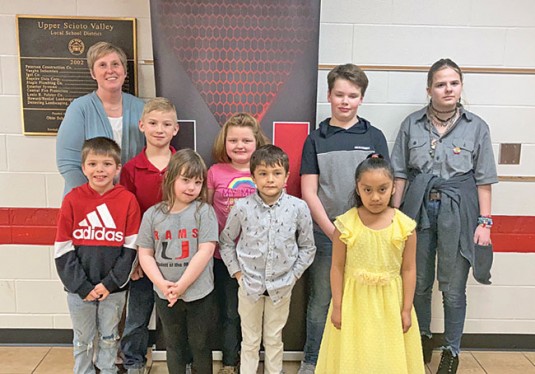 USV students saluted Posted on April 12, 2022 0 Upper Scioto Valley Elementary Students of the Month were recognized during the school board’s April meeting. They were (from left, front) Gauge Bailey, Penelope Piper, Saul Sigala, Fernanda Ambros; (back) Principal Sara Core, Cole Hunt, Carlee Decker, Carter Mizek and Allison Stansberry. Times photo/Kendrick Jesionowski