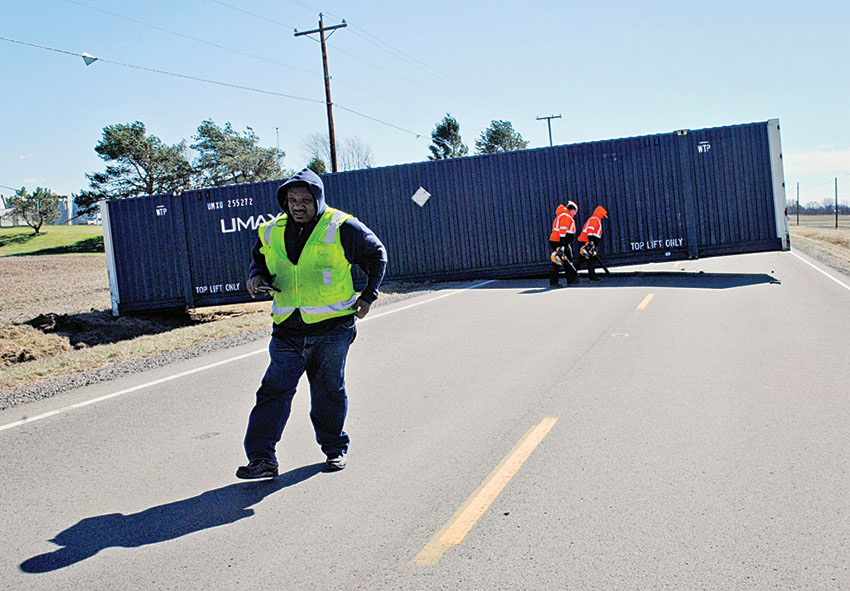 Wind-blown trailer blocks Ohio 31 Posted on March 8, 2017 0 The strong winds on Wednesday afternoon blew the cargo trailer off a semi-truck traveling on Ohio 31, north of Mount Victory, blocking both lanes. As of 2 p.m., the road has been closed for more than two hours while a crew attempts to move the trailer. Traffic is being rerouted onto Ohio 292. Times photo/Dan Robinson