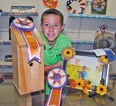 Arts and Crafts winners announced Posted on September 11, 2018 0 Top awards were given to the winners of the Arts and Crafts division of the Hardin County Fair. Stone Sauber of Kenton had a very successful fair. He not only won championships in fine arts, but continued to haul in the rosettes at the arts and craft show where his artistic design “birds and bees” entry was popular with the judge. His Funny Bunny entry was the grand champion and Sauber’s string art display brought home a grand championship title. Times photo/Dan Robinson Tabby Joseph’s entries in the antique show were hits with the judge. He awarded rosettes to her canning jar and also to her double slate. Times photo/Dan Robinson Neil Williams of Kenton continued to capture the top honors in the woodworking competition at the Hardin County Fair. His working clock, made entirely from wood, brought Williams his eighth consecutive title on fair competitions. Times photo/Dan Robinson Gary Whitmer won a reserve championship rosette for his repurposed barn board scarecrow creation (left), while his son, Jack, took home honors for his honey oat pan rolls in the arts and craft competitions. Times photo/Dan Robinson Stone Sauber of Kenton was the grand champion in two divisions of the middle school competition at the fine arts show of the Hardin County Fair. His bird house was named a grand champion in its division and the picture frame he created went home with another grand championship title. Times photo/Dan Robinson Penny Carrig of Kenton brought the grand champion wine in at the 2018 Hardin County Fair with her Raspberry Mocha creation. Times photo/Dan Robinson Finley Dalton’s stepping stone creation was a reserve champion in the youth division of the arts and craft contest. His sister, Nora Dalton, went home with the grand prize in the funny bunny competition. The Daltons make their home in Kenton. Times photo/Dan Robinson The judge in the fine arts competition of the Hardin County Fair was impressed with the drawing skills of McKayla Creviston of West Mansfield and awarded her a reserve championship title in the middle school mixed media division. Times photo/Dan Robinson Jan Aller of Kenton won a reserve championship title in knitting with her scarf and hat set with lace patterns at the arts and craft show of the Hardin County Fair. Times photo/Dan Robinson Steve Gliebe gave new life to a wooden pallet and crafted it into an American flag which caught the judge’s eye in the arts and craft competition. It earned Gliebe a grand championship rosette. Times photo/Dan Robinson Colleen Collins (left) of Kenton took home a grand championship rosette for her quick bread entry in the 2018 Hardin County Fair and her daughter, Diana Roll of Kenton earned a reserve title for the chocolate layered cake she baked for the competition. Carl Woodruff of Dunkirk brought the wining entries for gourds at the Hardin County Fair’s flower show.