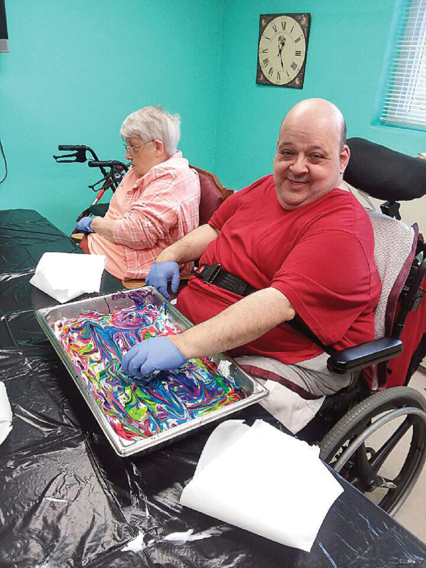 Coloring eggs Posted on April 4, 2018 0 Submitted photo Hardin Hills Health and Rehab Center’s residents Betty Sprang and David Patton put on gloves to color eggs for Easter. Activity staff found a new idea to color eggs with shaving cream and food coloring which made beautiful marbled looking eggs.