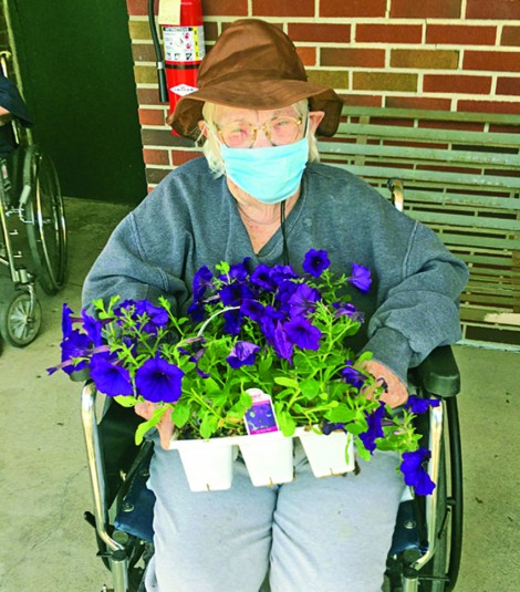 Enjoying the flowers Posted on June 10, 2020 0 Submitted photos At left, Hardin Hills resident Fern Doll helps to plant flowers in the courtyard, while (right) resident Rose Williams admires the flowers.