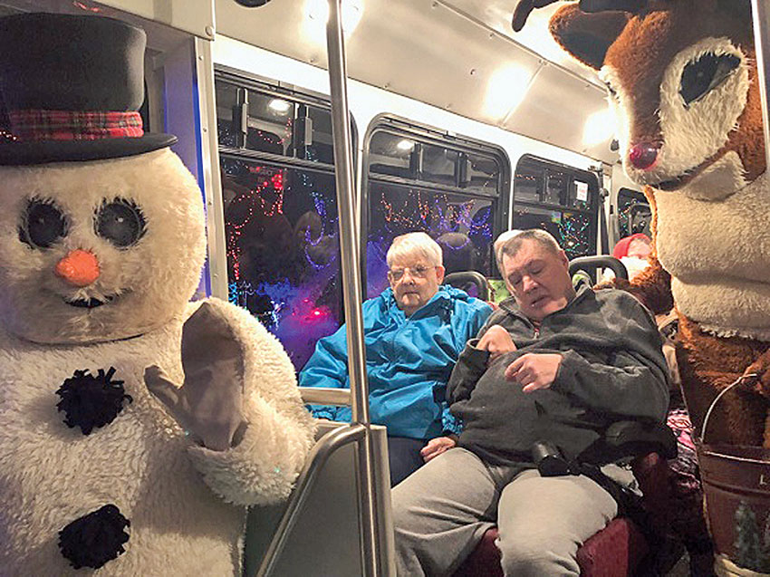 Holiday visitors Posted on January 2, 2019 0 Submitted photo Betty Sprang and Keith Philips, residents of Hardin Hills Health and Rehab Center, enjoy the Christmas light tour in Upper Sandusky when the snowman and the reindeer entered the bus that evening.