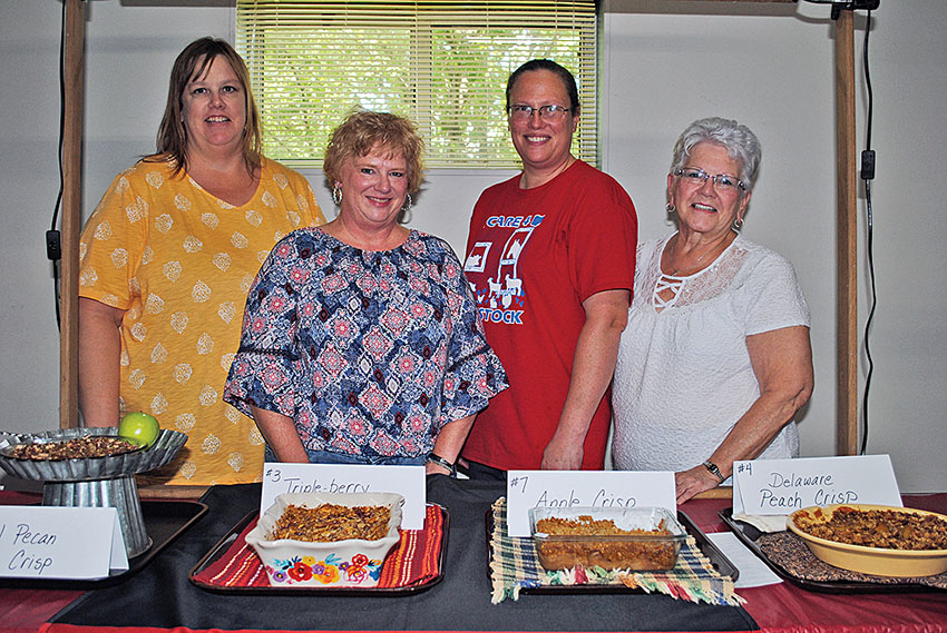 Sweet entries Posted on September 5, 2018 0 Times photo/Dan Robinson The first Dish Day at the Hardin County Fair featured fruit crisp entries on Tuesday. The top prize went to (from left) Roberta Whitmer’s caramel pecan apple crisp. Lori Paul won second place with a triple berry almond crunch and Courtney Kiper’s apple crisp was named the third-place winner. Jackie James went home with fourth place with her Delaware peach crisp. There were nine entries in the contest.
