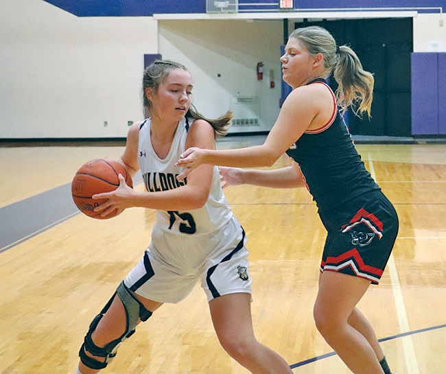 Ada girls get within 4 late, but rally falls just short in loss to McComb Posted on November 19, 2022 0 Back on the hardwoodAda’s Autumn Andreason (15) saw her first game action in two years during Friday night’s 49-40 home loss to Lima Central Catholic. She scored four points.Times photo/Richard Katterjohn ADA — The Ada girls basketball team played a much stronger second half, but it wasn’t enough as they lost its opener 49-40 Friday night against McComb at home. First-year Bulldog coach Zach Ricker said they gave everything they had to cut it to four late in the game, but the Panthers gained some separation when they needed it. He loved the fight and the toughness that he saw, especially when they were down 12 or 14 in the fourth quarter. He thinks there are a lot of positives from tonight’s game despite the defeat. Junior guard Olivia Burkhart scored a team-high 13 points, while senior guard Courtney Sumner bagged 12 and sophomore guard Lexi Poling went for five of her own. Ada trailed 21-13 at the break after only getting four points in the first quarter. The Bulldogs shook off the rust and got within striking distance in the fourth, but McComb countered and pulled away to win by nine. Next up, Ada is set to play at Cory-Rawson on Tuesday at 6 p.m.