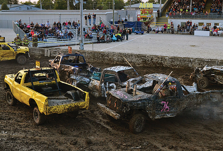 Banged up Posted on September 11, 2017 0 Times photo/Kendrick Jesionowski Close to 1,500 people in attendance as the full size trucks smash into each other in the mud pit during the demolition derby at the Hardin County Fair on Saturday. Ryan Seitz of Kenton won the division.