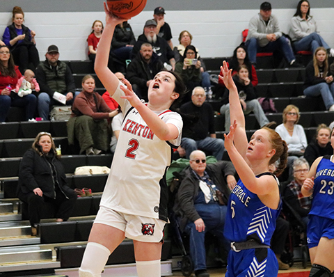 Bonham shines as Riverdale blows by Kenton Posted on February 3, 2026 0 Times photo/Sean BlevinsTough shotKenton’s Emori Criner puts up the shot in the paint during Monday’s 51-23 loss to Riverdale. Criner led the Wildcats with seven points. By SEAN BLEVINS Times sports editor Marissa Bonham finished with 19 points, nine steals and seven rebounds as Riverdale scored the first 17 points of the game and cruised to a 51-23 win at Kenton Monday night in nonconference girls basketball play. A disastrous start doomed the Wildcats (4-13) as they suffered their fifth straight loss and their 12th in the last 13 games since leading scorer Sidney Payne suffered a torn ACL. Kenton turned the ball over 13 times and nine of those were steals by Bonham, who wasn’t too far off from a triple-double. Bonham had four steals that led to buckets in the second quarter. “I think we were able to get out in transition a little bit,” Riverdale coach Drew Bostic said. “It’s always good to score first. That’s part of our message: score first, score next, score last.” Times photo/Sean BlevinsAttack modeRiverdale’s Marissa Bonham drives to the hoop during Monday’s 51-23 win at Kenton. Bonham recorded 19 points, nine steals and seven rebounds. Riverdale was 19/47 (40%) from the field, while Kenton went just 6/38 (16%). The Wildcats made six of their 18 triples, though, and Bostic wasn’t pleased with his team’s close outs in the first half. “I wasn’t really happy with our defense in the first half with the shooters. We gave up 15 points and all of them were from threes. I didn’t think we were closing out well. We were jumping passes. This wasn’t the style of defense that we saw last Thursday. I thought in the second half we did a better job of closing out,” Bostic said. Lauren McBride chipped in 12 points for Riverdale. Claire Inbody recorded eight points and 12 rebounds. Annalese Woodruff tallied five points. Kenzie Furr netted four points, and Faith Schlarb had three. Times photo/Sean BlevinsPaint presenceRiverdale’s Claire Inbody makes a contested shot inside the paint during Monday’s 51-23 win at Kenton. Inbody had eight points and 12 rebounds. “It’s nice to see different people step up every game. We haven’t really seen everyone be on the same page all in one night. It’s going to be a lot of fun. We have a lot of role players around them that get their share. Bonham had a big game tonight with 19. Thacker had a huge game where she put up 14 against Arcadia. Then you have nights like tonight where Lauren [McBride] has 12. That’s the beauty of our team. Somebody finds a way to get it done every night,” Bostic said. Riverdale could do no wrong in the first quarter as they raced out to a 17-0 lead with everyone contributing. Kenton’s Lyla Gammon knocked down a triple with 1:03 left in the first quarter to halt the 17-0 run. Riverdale led 17-3 after one. Times photo/Sean BlevinsGoing upKenton’s Jadynn Byers attempts a layup in the fourth quarter of Monday’s 51-23 loss to Riverdale. Byers had four points. Kenton hit four 3-pointers in the second quarter, but was still outscored 18-12 in the frame. Kenton’s Emori Criner buried back-to-back treys late in the first half to cut it to 33-15. The Falcons held a 35-15 edge at the break. Riverdale outpaced Kenton 13-5 in the third quarter to stretch their lead to 48-20. Bonham hit a 3-pointer early in the fourth quarter, then nobody scored for almost five minutes. Kenton’s Brylee Bostelman drilled a triple with 3:20 left in the game, and it was a 51-23 final. Criner paced Kenton with seven points. Jazlynn Long scored six points. Jadynn Byers added four points. Gammon and Bostelman both had three points. Out of her handsKenton’s Allyson Rhinehart passes it to a teammate behind the arc during Monday’s 51-23 loss to Riverdale. Next up, Kenton plays at Wapakoneta at 7:30 p.m. Thursday. Riverdale has a pivotal Blanchard Valley Conference tilt when they host Liberty-Benton at 7:30 p.m. Thursday. The Eagles can clinch the outright BVC title with a win and the Falcons can secure a share by winning their final two league games.