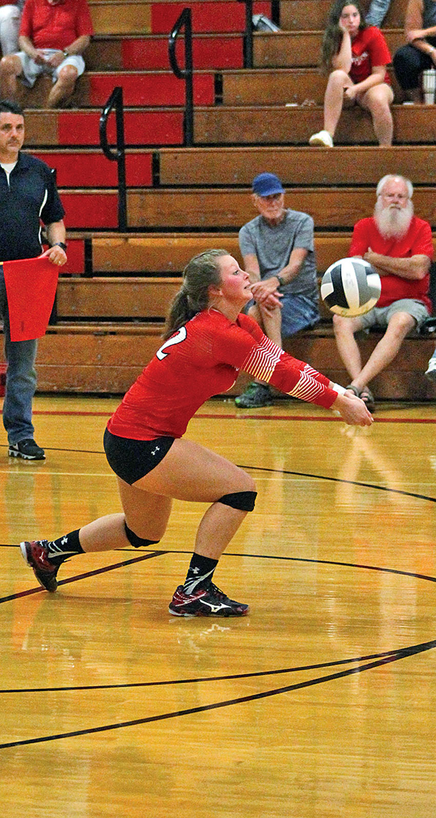 Digging it out Posted on September 7, 2018 0 Times photo/Ty Thaxton Kenton defensive specialist Lyndi Taylor scoops out a dig during the first set of the Lady Wildcats’ Western Buckeye League match against Defiance on Thursday night. Results from the match were not received by presstime.