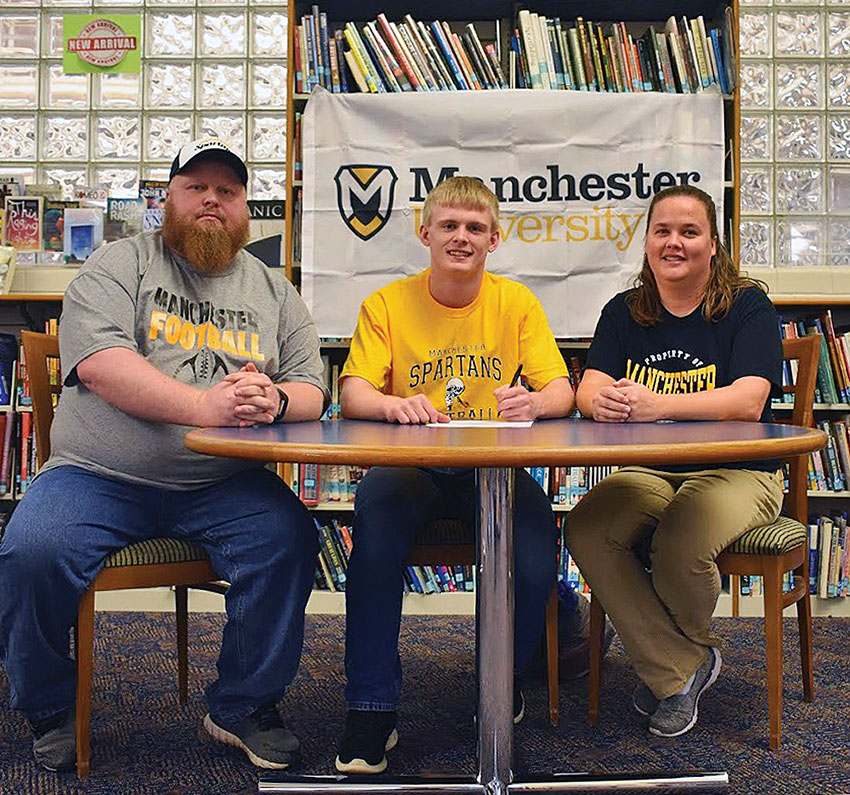 Going to Manchester Posted on February 8, 2018 0 Submitted photo Riverdale High School football standout Cody Mason (center) will attend Manchester University in North Manchester, Ind., and continue his athletic career by playing football for the Spartans. Pictured with Cody are his parents Jim and Diane Mason.