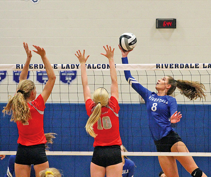 Here it comes Posted on October 9, 2018 0 Times photo/Ty Thaxton Riverdale’s Bry Vanden Bosch tries to hit the ball past the block of a Hopewell-Loudon player during Monday’s Blanchard Valley Conference match. Results were not available at presstime.