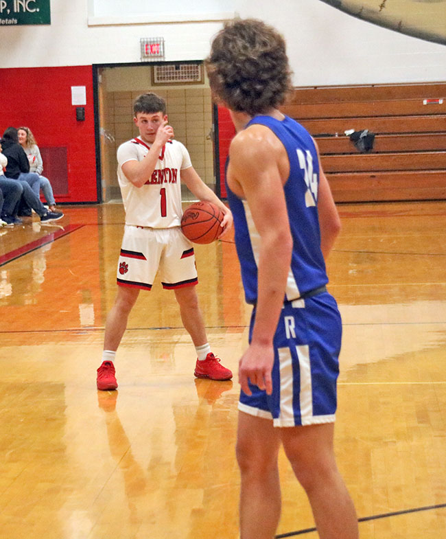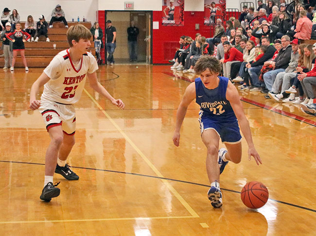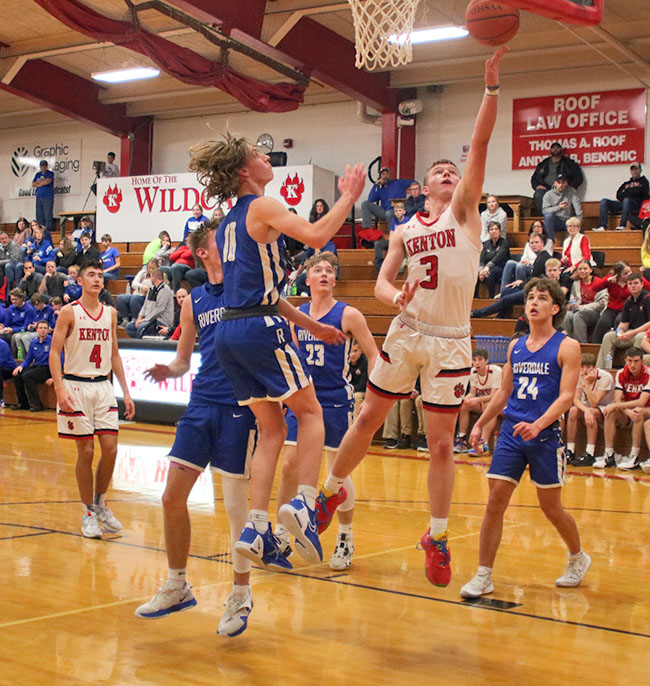Hot shooting helps Wildcats blow out Falcons at home Posted on December 12, 2022 0 Easy finishKenton’s Gavin Payne (3) rises over Riverdale’s Ethan Elwood (10) for an easy layup during the third quarter of the Wildcats’ 72-50 rout of the Falcons. Payne feasted inside with 13 points.Times photo/Sean Blevins By SEAN BLEVINS Times sports editor Kenton made it look easy as it got off to a 12-0 start and never looked back en route to a 72-50 nonconference win over Riverdale Saturday night in Kenton. The Wildcats got back to even in the win column at 3-3 behind four double digit scoring performances by Colby Quay (19 points), Ethan Yoder (16), Gavin Payne (13) and Parker Rarey (10). The Falcons fall to 1-6 after getting their first win Friday against North Baltimore. KHS coach Ryan Miller said they were able to experiment with their zone defense a bit in the win, but was far from satisfied with how their man defense has played all season so far. Taking the spaceRiverdale’s Davin Harbor (22) takes the space and drives around Kenton’s Steven Piper (23) late in the fourth quarter of Saturday’s county rivalry. The Wildcats won 72-50 at Kenton High School.Times photo/Sean Blevins The Wildcats try to play to their strengths as much as they can and they were able to force 26 turnovers by the Falcons, largely from throwing a variety of different looks at them. The rout was on from the start, although Riverdale got slightly better throughout. Payne made two shots, Quay hit two shots, Rarey got a bucket and Kenton jumped out to a 12-0 lead quickly. Kenton’s first quarter ball movement was as crisp as it has been in their six games and they kept getting assisted buckets. PatienceKenton’s Tyson Lawrence (1) patiently holds the ball to milk the clock toward the end of the third quarter of Saturday’s home blowout of Riverdale.Times photo/Sean Blevins Yoder drilled two triples in a row and Manny Wilson got a putback right before the buzzer sounded, putting the Wildcats up 25-10 after one. The Falcons played a more even second quarter, but were still outscored 13-12 in it. Mitchell O’Flaherty, Evan Reiter and Ethan Elwood were steady contributors as Riverdale went into the locker rooms down 38-22. “We can’t dig ourselves a hole in the first quarter and try to climb out, you exert too much energy trying to make it respectable. We kept battling. We cut it to 12, but we were exhausted and I wanted to ride with the guys that were in. I told our guys that if we could make them come out of the zone, we could make them uncomfortable,” first-year Riverdale coach Drew Hobensack said. Reiter dropped eight of his 13 points in the third quarter. O’Flaherty had six of his 12 points in the third as the Falcons scored 21 in it, but they also gave up 20. Quay was a force from the outside, while Payne was eating on the inside and it was a long night for the Falcons. Rarey had his best offensive game of the season. His toughness and grit in the post adds a much-needed element to the Wildcats on both ends. Pushing through contactKenton’s Gavin Payne (3) slides by a Riverdale defender in the third quarter of Saturday’s 72-50 win at KHS. Payne dominated on the inside with 13 points and is rounding back into his all-league form.Times photo/Sean Blevins “He [Rarey] has come with a workman’s attitude and he has made us better,” Miller said. Kenton doubled up Riverdale in the fourth quarter, 14-7, to win 72-50. Elwood finished with nine points in the loss. Carson Young had six. Davon Harbor added five, Jack Dusseau four and Landon Holland one. “We can’t have 26 turnovers against good teams, that’ll kill you. We shot 60% from two, so that’s good. We’re trying to get three or four guys up around 10 points. Mitchell [O’Flaherty] and Ethan [Elwood] were really good tonight,” Hobensack said. Kenton’s Tyson Lawrence had six points in the victory. Manny Wilson tallied four, Steven Piper hit a three and Dawson Miller rounded it with one. Next up, the Wildcats will host Bath on Friday at 7:30 p.m. The Falcons will travel to face Pandora-Gilboa Friday at the same time.