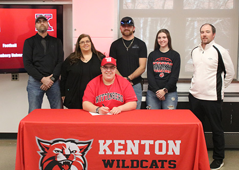 Kenton’s Searson signs to play football at Wittenberg University Posted on March 1, 2025 0 Times photo/Sean BlevinsHeaded to WittenbergKenton senior Dylan Searson (seated) signed to continue his academic and football career at Wittenberg University on Friday afternoon. He plans to major in sports management and education. He will play as an offensive guard for the Tigers, who are at the Division III level. Surrounding him at his ceremony were (standing, from left) his father Fred Searson II, his mother Heather Searson, his brother Brian Searson, his sister Kylie Searson and Kenton head football coach Zach Turner. By SEAN BLEVINS Times sports editor Kenton senior Dylan Searson plans to become a college football coach one day and he became one step closer by signing on Friday afternoon to continue his academic and football playing career at Wittenberg University. Searson will be an offensive guard for the Tigers. Once his playing days are over, he hopes to enter the coaching ranks. He will major in sports management and education. Ohio Northern University and the Ohio State University at Lima were the other options he was considering. “I chose Wittenberg because of their culture and everything there,” Searson said. “They’ve only had one losing season in the last 50 years. Their facilities are amazing for a school at the Division III level. It can honestly be just like some Division I or Division II colleges. The culture is great. I felt welcome. I got to meet a lot of the players. They also have a church service on campus. They have great coaches that connect well with the players. To have a former Division I coordinator as your head coach is amazing to have.” Wittenberg University is located in Springfield, which is 53 miles south of Kenton High School. “It’s a small campus, easy to get to everything,” Searson said. “They have what I want school-wise. It’s affordable as well. It seems like it’s a great place in general. The students seem like a family there.” Searson is listed at 5-foot-11 and 280 pounds. He boasts a high IQ, a standout work ethic and he’s very coachable. He is a role model and a leader for the younger kids, which will come in handy for the career path that he is pursuing. He is willing to inspire and is always thinking outside of the box. Searson’s senior season was cut short after three games due to a knee injury. He provided some meaningful snaps before he was sidelined. The Wildcats went 2-8, but they had the top offense in the Western Buckeye League. “He started off really strong for us,” Kenton head football coach Zach Turner said. “He got banged up at the beginning of the season, which kind of really hampered him. He’s a high IQ player. Not only did he understand his role, he wanted to teach the younger kids along the way. He wants to be a college coach – if you want to do that then you have to have a love for the game – which he does. He was always asking questions. He was always trying to tweak his technique and figure out what worked. To coach college football a big step is to play college football. He gets an opportunity to do that here at Wittenberg University.” In Searson’s junior season, he played in all 10 games as a defensive tackle. He was a solid contributor in several facets as the Wildcats went 3-7. He noted that his favorite moment in his four years was when Kenton beat Lima Bath 38-34 in week four of 2023 on a hail mary from Korbin Johnston to Grady Kleman-Beazley as time expired. “He’s going to work super hard,” Turner said. “He’s going to put the time in to understand what happens in the game of football and what it takes to be successful. Most college teams will use gap schemes and they’re going to ask him to pull and things like that. He’s just going to have to work on his athleticism and his quickness because at that level you’re playing the best of the best. His understanding of things pre-snap and his work ethic will help him a lot at the next level.” Searson played sparingly on varsity as a sophomore. He enjoyed getting some reps on the junior varsity squad, but was a bit limited as he suffered a knee injury while working on his family farm. As a freshman, Searson switched to playing defensive tackle after playing on the offensive line in middle school. There was a big learning curve and it certainly took some time to become serviceable at the new position. “He’s come a long way over the years,” Turner said. “His biggest thing is he got into the weight room and started working hard at it. He got a lot stronger from his junior to his senior year. He put his mind to it and he was a contributing factor for us. Not only was he that, he was a good leader for the younger kids. Dylan’s heart is big and he loves to help and encourage people. I think that’s a huge thing when you’re looking at a teammate – that’s someone you will go to battle with every day.”