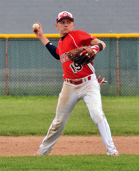 Kenton senior Trey Reichelderfer, shown throwing out a runner from shortstop this season, was named to the all-Western Buckeye League baseball second team.