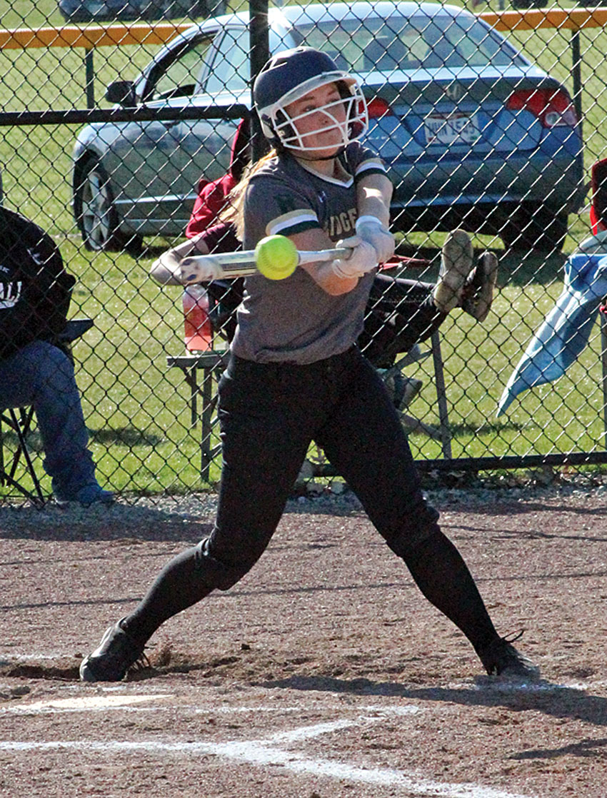 Making contact Posted on April 21, 2018 0 Times photo/Ty Thaxton Ridgemont’s Kylie Turner smacks the ball in Friday’s Northwest Central Conference matchup against USV.