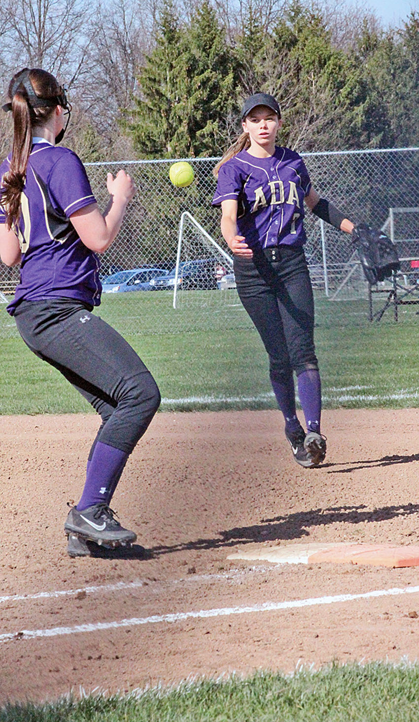Play to first Posted on April 27, 2018 0 Times photo/Ty Thaxton Ada second baseman Raina England tosses the ball to Sidney Gossard during the Bulldogs 8-5 loss to Spencerville on Thursday. Statistics from the game were not received.