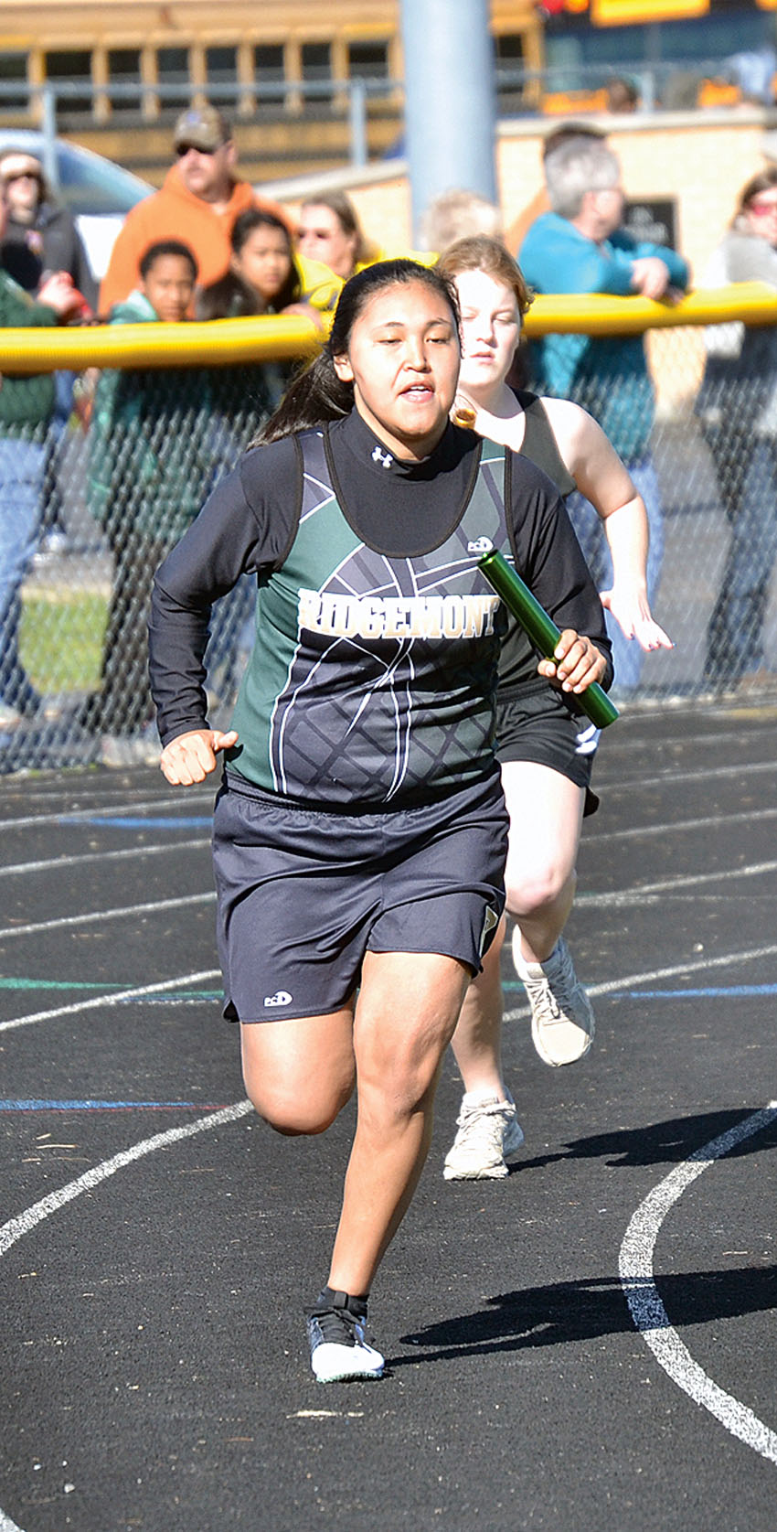 Pushing ahead Posted on April 10, 2017 0 Times photos/Kendrick Jesionowski Ridgemont’s Esther Patterson maintains her lead on a competitor during the 3,200 relay at the Antique Alley Invitational on Saturday.
