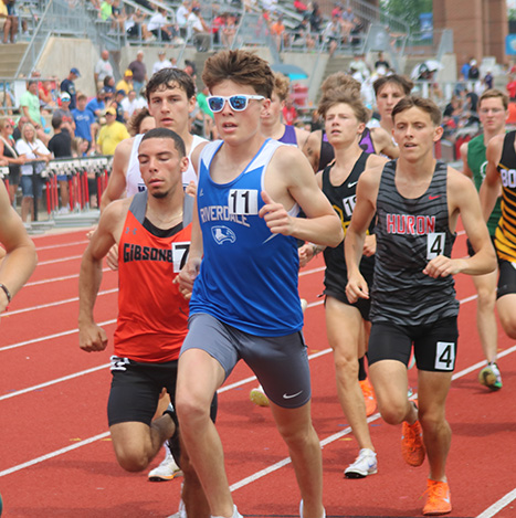 Riverdale’s Evans 10th in 3200 run Posted on June 10, 2025 0 Times photo/Sean BlevinsPersonal recordRiverdale sophomore Kolten Evans runs with the pack during the 3200 as he set a personal record of 9:43.33 on Saturday in the Division III state track and field meet at the Ohio State University’s Jesse Owens Memorial Stadium. By SEAN BLEVINS Times sports editor COLUMBUS — Riverdale’s Kolten Evans has a high standard for himself. The talented sophomore ran a personal record time of 9:43.33 for 10th in the 3200 on day two of the Division III state track and field meet Saturday at the Ohio State University’s Jesse Owens Memorial Stadium. “For some reason I didn’t have a lot of confidence today, but it’s a PR,” Evans said. “That was tiring. It’s really hot. I’ll be back next year. Evans was seventh after the first 400 meters and stayed in seventh for the first mile. He dropped to ninth after 2,000 meters (five laps), then 10th on the following lap and 11th on the next. He was able to slide up a spot to 10th on the final lap, which was his second fastest of any of the laps he ran. “I’ll be upping my miles a lot. I don’t want this to happen again. I’m going to keep the tradition of Riverdale going to state and hopefully inspire other generations to go out for cross country because it benefits yourself and the others around you,” Evans said. Evans is determined to become an All-Ohioan in the future. He was just two spots away from reaching the podium as a sophomore in the two-mile. Whiteoak senior Landen Eyre crossed the finish line in 9:12.46 to edge Steubenville Catholic Central senior Andrew Rohde (9:12.94) for the state title.