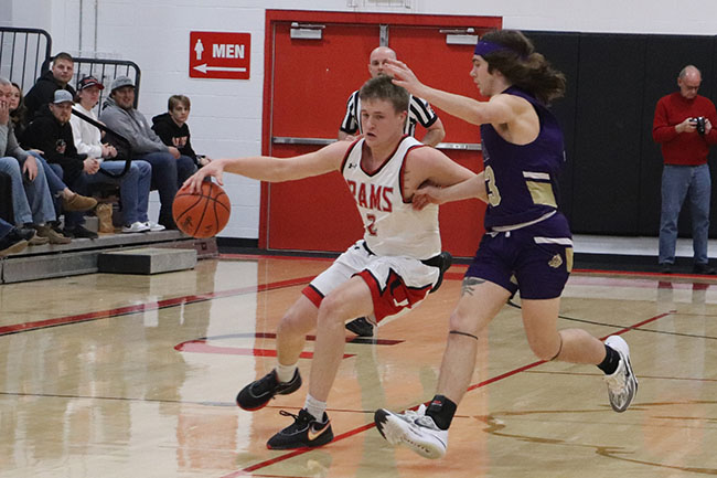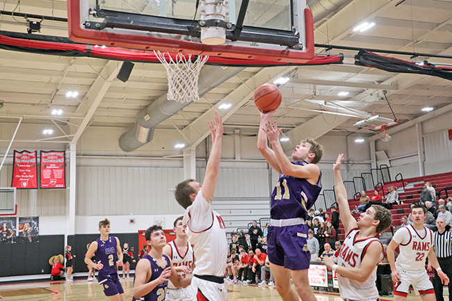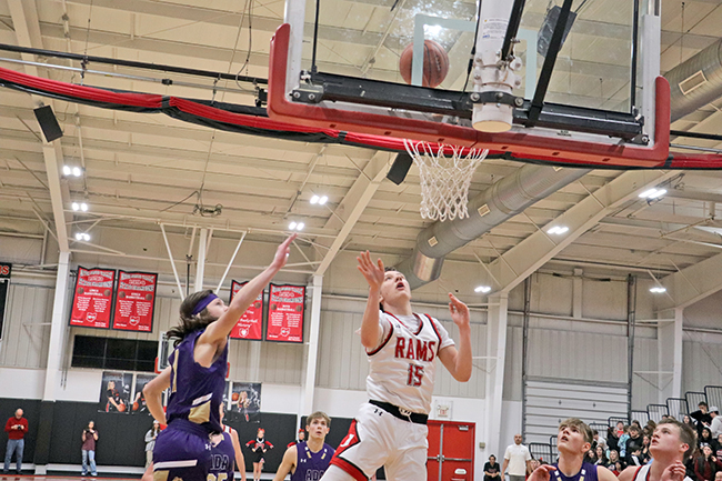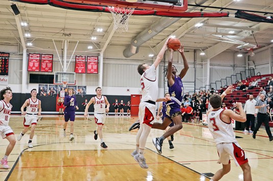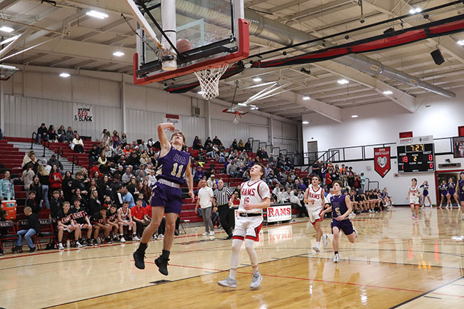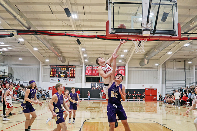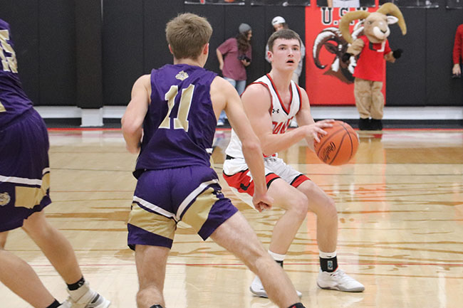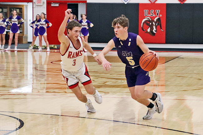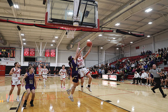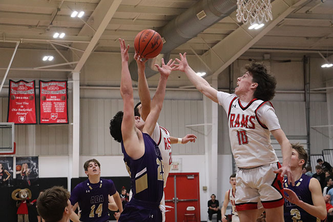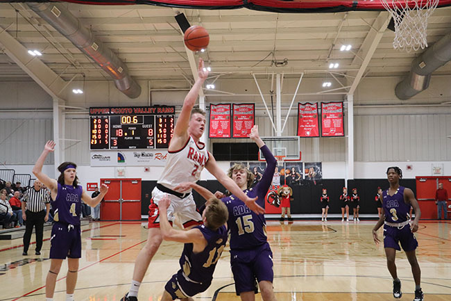 USV boys cruise past Ada 73-46 (w/photo gallery) Posted on January 15, 2024 0 Grabbing the boardUpper Scioto Valley junior guard Maddox Underwood (23) jumps as high as he can and grabs the rebound with Ada junior forward Ethan Lawrence (15) by his side during Saturday’s game. USV won 73-46 in McGuffey.Times photo/Richard Katterjohn McGUFFEY — The Upper Scioto Valley boys basketball team cruised to a 73-46 home non-league win over backyard rival Ada Saturday night. USV improves to 6-5 after picking up its third straight win. Ada drops to 2-10. Alex Sanders led the Rams with 19 points and six assists as USV built a 32-23 halftime lead. USV’s Maddox Underwood was in control with 18 points, 10 rebounds and three steals. Andrue Kindle knocked down three triples and had 11 points. Beau Sanders poured in 12 points and Mason Thompson added seven points. Strong handsUpper Scioto Valley freshman guard Beau Sanders (15) blocks Ada sophomore guard Kayleb Hickman (3) during Saturday’s contest. The Rams won 73-46 in McGuffey.Times photo/Richard Katterjohn The Rams outscored Ada 17-10 in the third quarter and 24-13 in the fourth quarter to post the 27-point victory. Kolton Dysert led the Bulldogs with 15 points. Slade Gossman tacked on 12 points. Levi Green had six points, and nobody else had more than four points. Ada was 17/48 (35%) from the field, while USV shot 24/50 (48%) on field goals. The Ada junior varsity won 47-26. Next up, Ada travels to face Delphos Jefferson Friday at 7:30 p.m. USV plays at Arcadia Jan. 23 at 7:30 p.m. Attack modeAda freshman guard Kolton Dysert (5) attacks the basket during Saturday’s 73-46 loss at Upper Scioto Valley. He had 15 points.Times photo/Richard Katterjohn Laying it inUpper Scioto Valley senior guard Alex Sanders rises above Ada sophomore Slade Gossman (25) for a layup with 4:37 left in the first quarter of Saturday’s contest in McGuffey. The Rams won 73-46.Times photo/Richard Katterjohn Going upAda junior guard Levi Green (11) goes up for a layup during Saturday’s 73-46 loss at Upper Scioto Valley. He had six points.Times photo/Richard Katterjohn