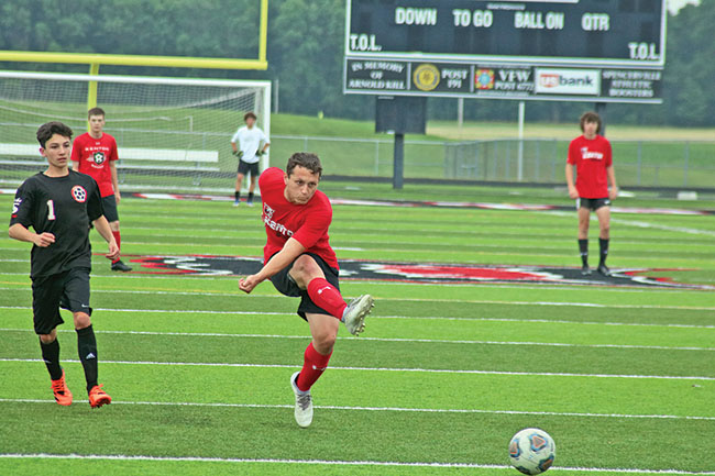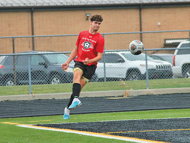 Wildcats come away with 2-2 draw at Spencerville, lots of positives (w/photo gallery) Posted on June 30, 2023 0 Taking a shotKenton senior fullback Joel Bowman fires a shot wide of goal with his right foot during Thursday’s Hogg Creek game at Spencerville.Times photo/Sean Blevins By SEAN BLEVINS Times sports editor SPENCERVILLE — The Kenton boys soccer team made the trek out to Spencerville on Thursday for its fourth Hogg Creek Soccer League game, where they drew 2-2 and had a lot of positives. There were some big differences in quality of play between the first and second units, which is typical for most teams. The expected varsity starters put two shots in the back of the net and the second unit conceded two, including a late own goal. Still, Kenton head coach Jamie Bartlett came away impressed with several players on each unit. “It’s always nice to see who steps up when you are down some players,” Bartlett said. “I use the term a lot, it’s called depth building. Alex Miller and Chris Villa got a lot of minutes with the A-group tonight. It’s such an invaluable experience for them. They’re just out there learning.” Kenton was without senior midfielder Ethan Yoder and freshman forward Gus Wingfield. Eighth grade midfielder Kyle Barrett stepped up in their absence and made some very good decisions with the ball. He was rewarded with an assist on Kenton’s second goal by redirecting a Micah Bowman throw-in close to the goal to set up an easy tap-in by sophomore forward Marlon Lopez. Sending it inKenton senior forward Adam Coffman sends a corner kick into the box during Thursday’s Hogg Creek Soccer League game at Spencerville, which ended up a 2-2 draw.Times photo/Sean Blevins “We had a really young front three out there. We weren’t quite ready when we stepped out there, but I loved the progress I saw in the second half. The best thing about these kids is that they are resilient and they are coachable. When you tell them something, they go out there and do what you told them,” Bartlett said. Marlon “The Honduran Wonderkid” Lopez was a bit timid in the first half, but got much better throughout. His high press is coming along and he even stole the ball from the Spencerville goalkeeper once, although he sent the shot wide. Fellow Honduran Chris Lopez had some solid touches as well. For the game’s first goal, Kenton senior left back Troy Brown floated a 35-yard free kick past the Spencerville goalkeeper after seeing him 10 yards off his line. The goalkeeper managed to get his fingertips on it, but couldn’t hit it away from goal and the referee saw it cross the goal line. Brown also made some outstanding clearances and that is why he earned the inaugural Kenton Times Man Of The Match award. “That’s such a great asset to have on your team there, someone who can chip it in from 30-plus yards out. His presence on the back line helps us so much,” Bartlett said about Brown. Kenton senior forward Adam Coffman was stout up top, making the right reads and plays consistently. When he and Brown are motivated and confident, it adds a different element to this team. “Adam did a really nice job attacking in his role tonight. He was very confident on the ball, taking guys on,” Bartlett said. Racing to the ballKenton sophomore forward Chris Lopez beats a Spencerville defender to the ball during Thursday’s road Hogg Creek Soccer League game. He had some nice touches in the contest, which turned out to be a 2-2 tie.Times photo/Sean Blevins The longtime Kenton mentor was thrilled with what he saw from the first-team defense, noting the performances of Brown and senior fullback Hunter Taylor. He also shouted out junior fullback Cam Jesionowski, who is steadily growing into a key depth piece that should see major minutes if he continues to improve. Bartlett said he saw flashes from senior fullback Sam Chen. The most impressive showing of the night arguably came from Kenton senior goalkeeper MJ Coulson. He was as aggressive as he’s been and in full command. “MJ back there makes such a big difference. The defense looked comfortable and he controlled them. He made several really nice saves when he came off his line,” Bartlett said. Freshman goalkeeper Hayden Holland saved a penalty kick in the second half to keep Kenton up 2-1, but a late own goal made it a 2-2 final. Bartlett said they will focus on fine-tuning their technical skills and more during the rest of the summer. He added that they are still in a “feeling out mode” where they are experimenting with what works and what doesn’t. “I thought the first-unit moved the ball really well until the final third. It’s the little things we have to work on. We need to make more runs and know when to make them. Once they learn those things, they are going to be dangerous,” Bartlett said. The Wildcats will have plenty of opportunities to get better in July before their season starts Aug. 11 at Allen East. Kenton’s next Hogg Creek game is July 13 at Fort Jennings at 7 p.m. They will make three separate day trips for a tournament in Yellow Springs from July 14-16, then go to a team camp at Ohio Wesleyan University the following week. They will cap July with a tournament in Strongsville.
